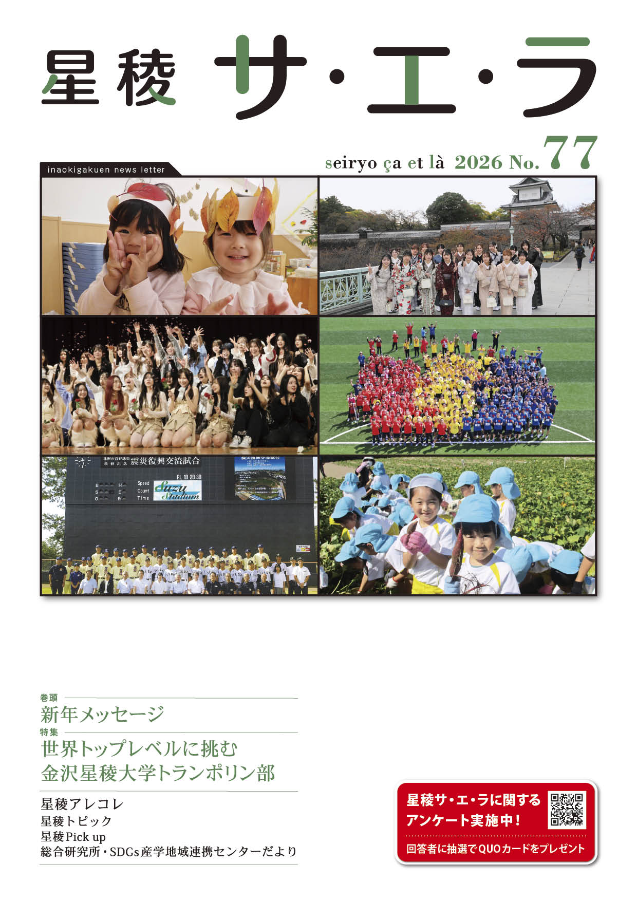 広報誌(サ・エ・ラ)では、学園の行事や出来事、学生・生徒・園児の学内外における活躍状況やお知らせなど、学園生活全般について紹介しています。
