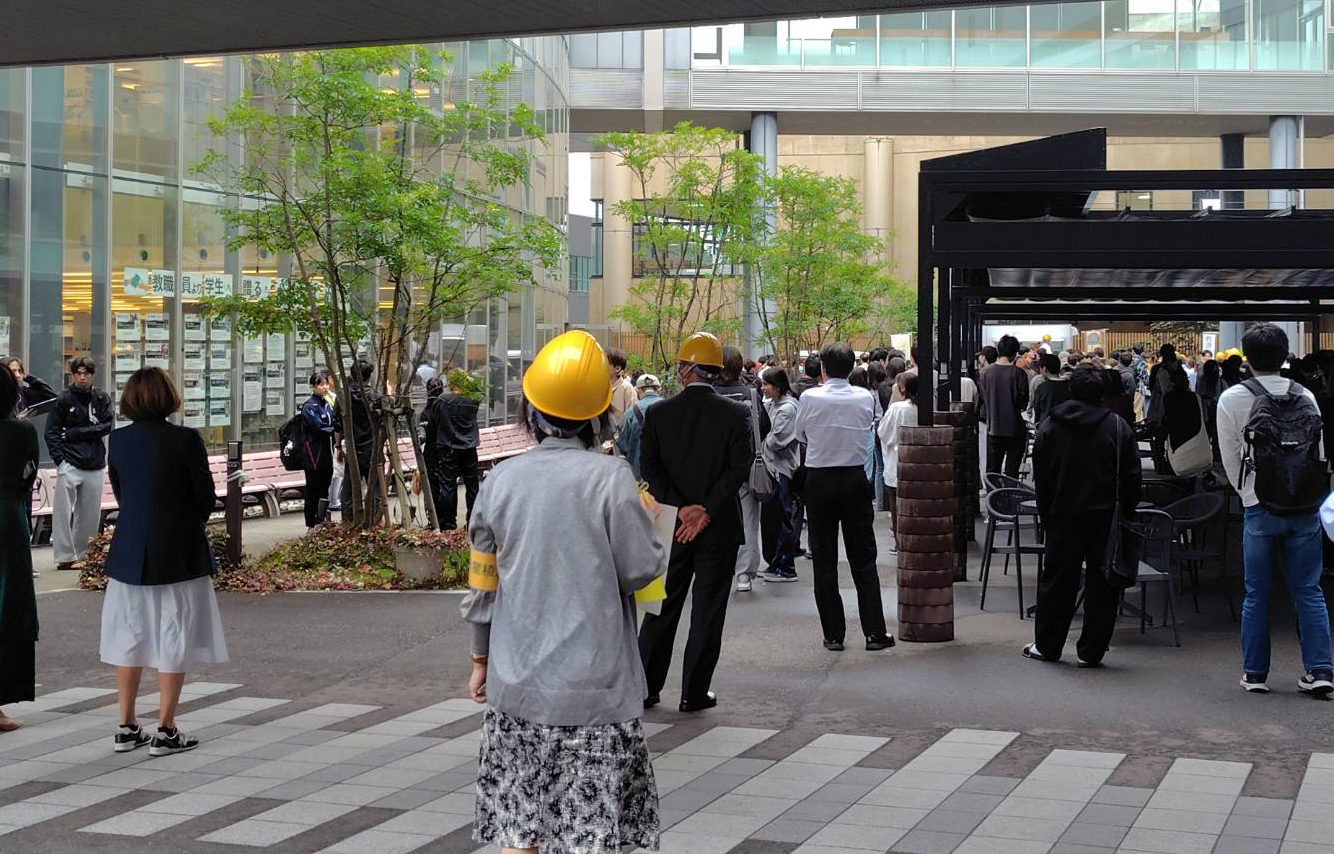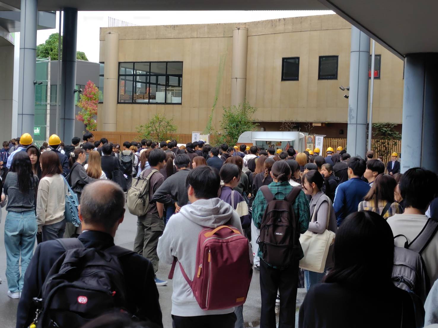 10月20日(月)、学校法人稲置学園では初の試みとなる大短・中高一斉の合同防災訓練(避難者は