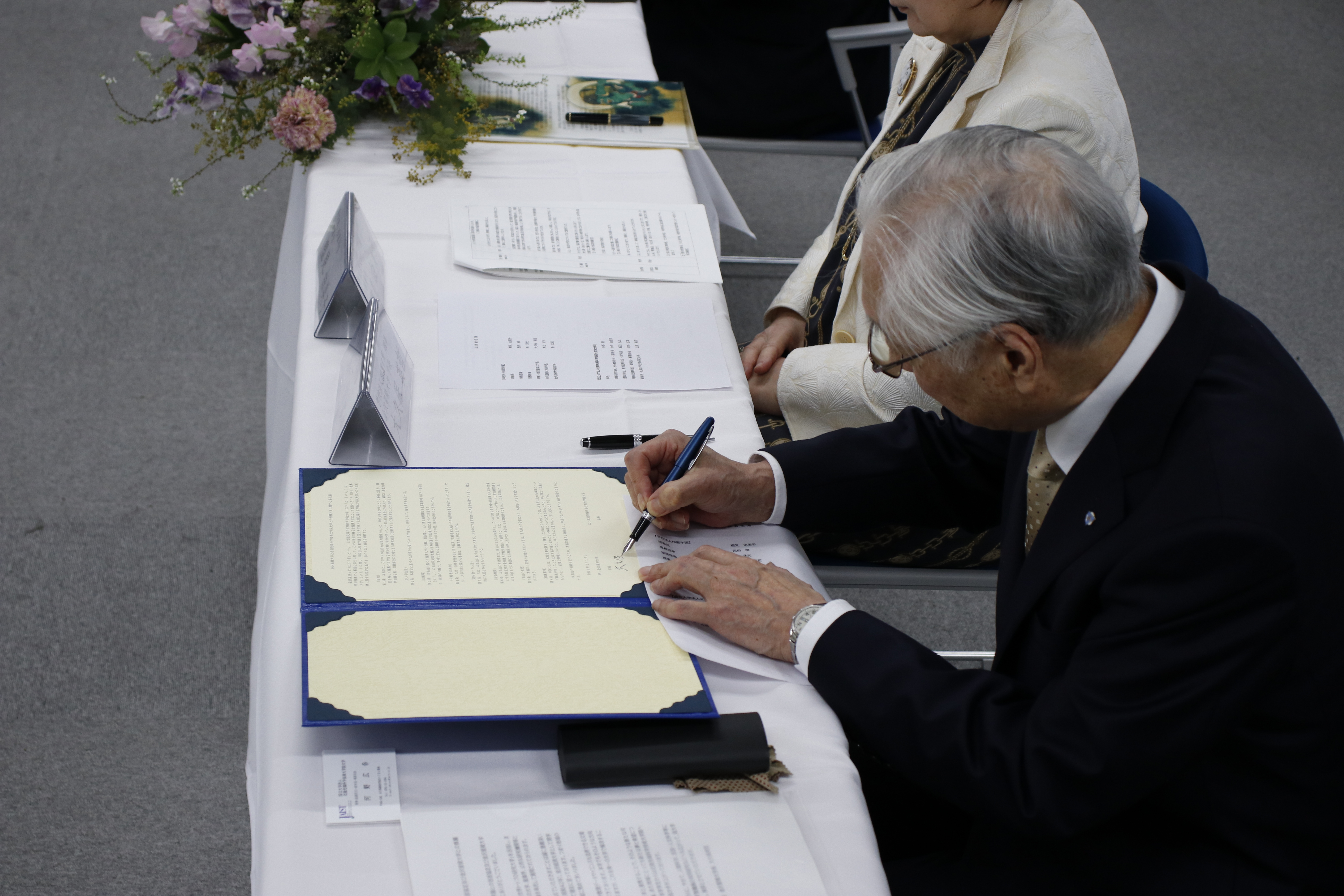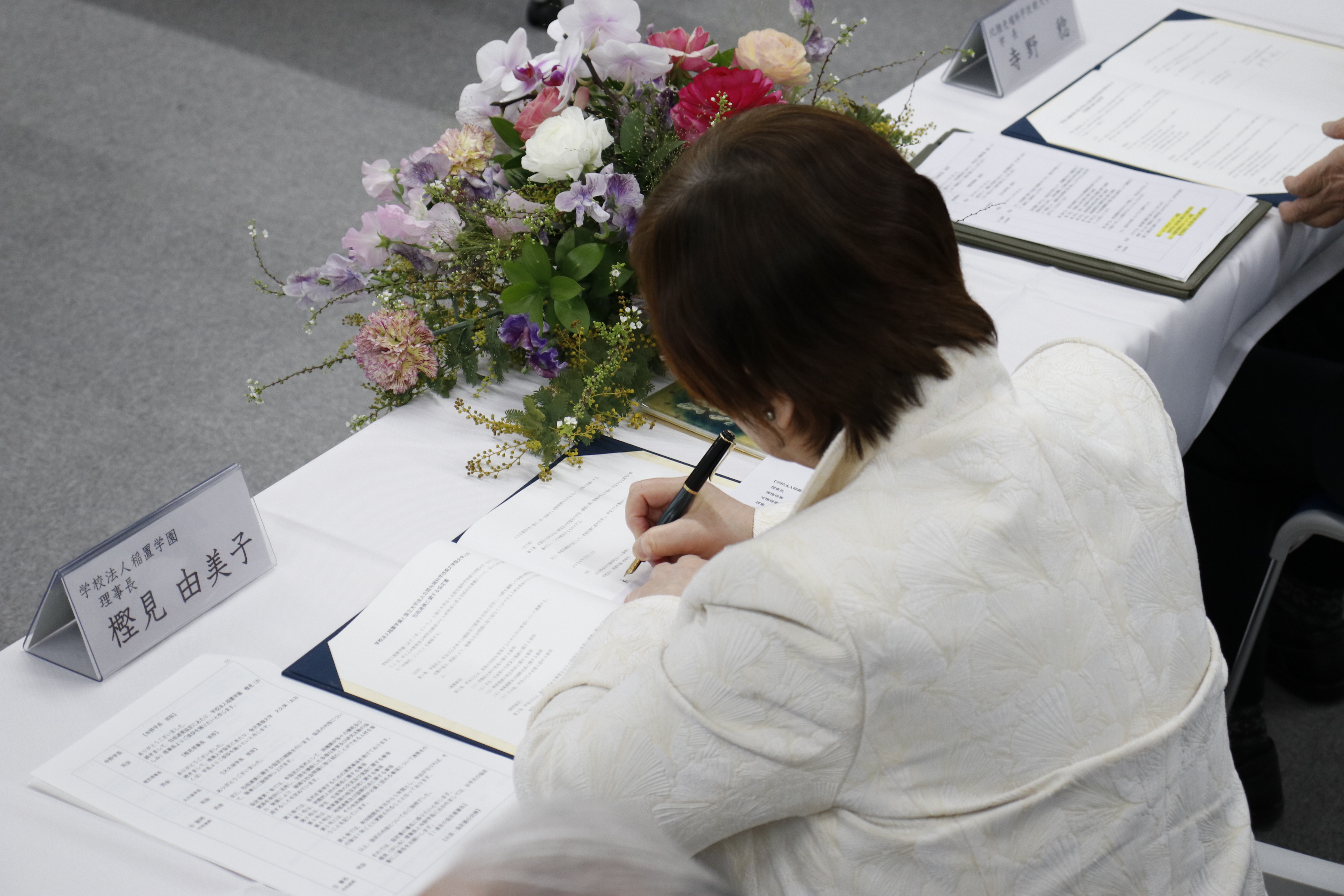 樫見理事長が包括連携協定書に署名を行い、無事締結に至ることができました。
