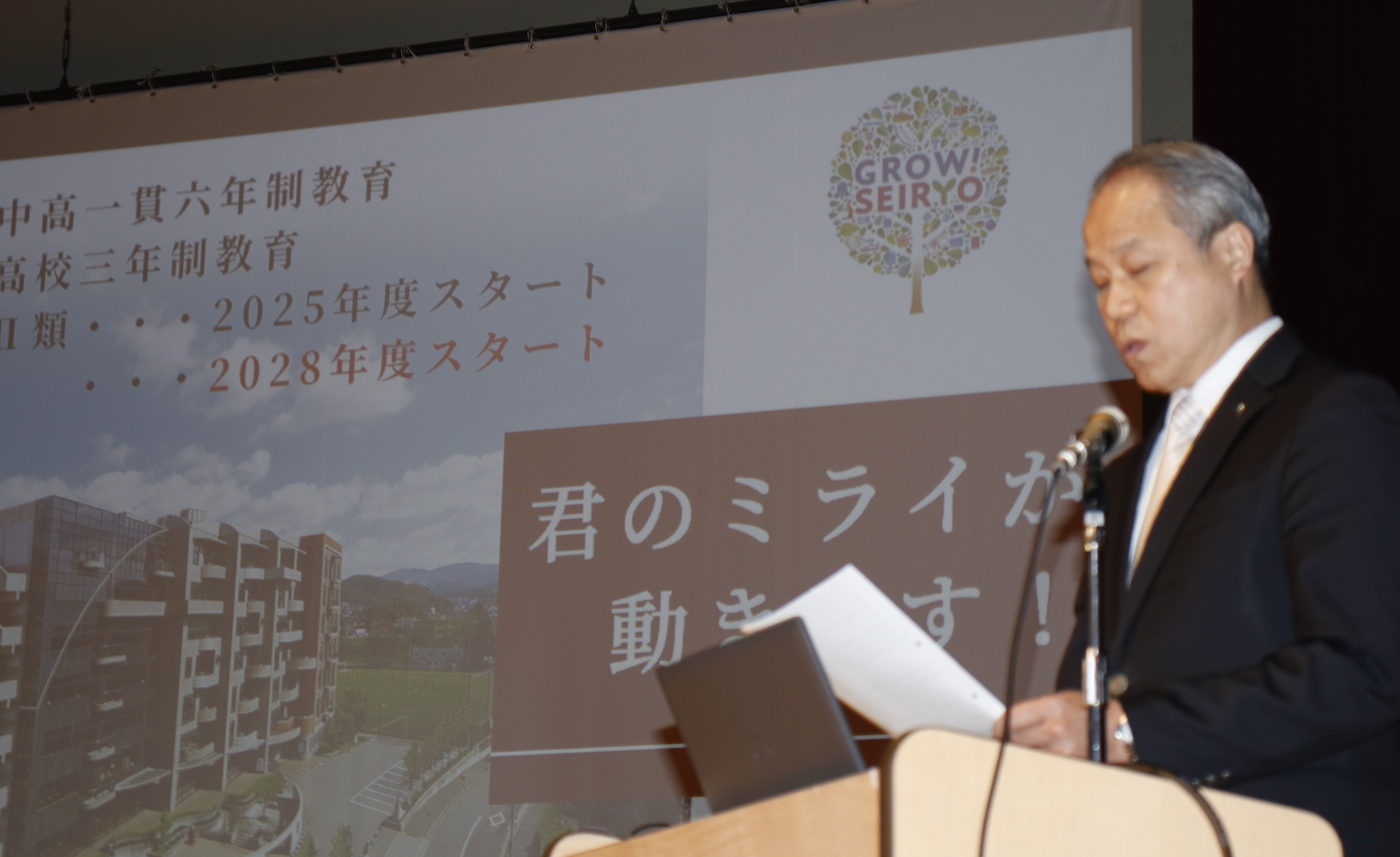 同日夕、学園の教職員約300名が稲置記念館講堂に集まり、始めに理事長が経営方針を説明、その後各設置校の長から新年度における決意や特色ある教育内容等が述べられ、年度の始めに職員一人ひとりが新たな気持ちでスタートを切ることになりました。
